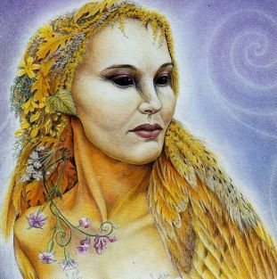 BlodeuweddFlower-born goddess of transformation whose tale of choice and consequence ends beneath the wings of night. more..., “Flower-Faced”, is crafted by magicians GwydionTrickster-mage of the Mabinogi whose cleverness makes and unmakes fates. creator of Blodeuwedd and tutor of Lleu. more... and Math from oak, broom, and meadowsweet to be a bride for Lleu Llaw GyffesHero of the Fourth Branch of the Mabinogi, Lleu Llaw Gyffes is a skilled, bright youth shaped by curses, clever magic, betrayal, and hard-won sovereignty.. Born not of lineage but of artifice, she becomes a mirror for questions of agency. In the Mabinogi, Blodeuwedd falls in love with Gronw Pebr and conspires to learn the strange conditions under which Lleu can be killed. Her betrayal is traditionally condemned, yet the myth also reads as a rebellion against being made for another’s purpose. When Gwydion transforms her into an owl, shunned by other birds, punishment and emancipation entwine.