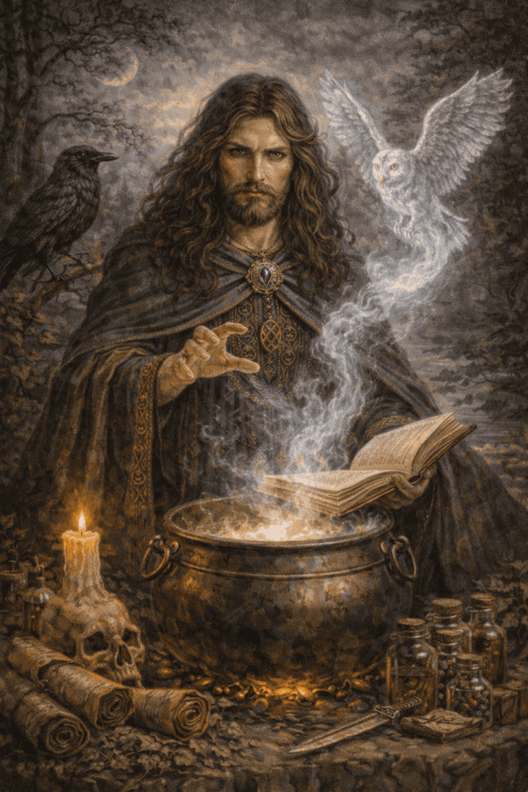 Gwydion is the Welsh magician whose wit can heal or harm. He fashions Blodeuwedd from flowers, mentors Lleu, and outmaneuvers rivals with illusion. Yet his cleverness has consequences: lives are shaken by his schemes. Gwydion personifies the ambivalence of intellect, its power to create, deceive, repair, and wound.